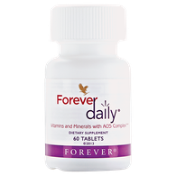 Αυτή η καθημερινή πολυβιταμίνη παρέχει το 100% της συνιστώμενης ημερήσιας δόσης (ΣΗΔ) βασικών βιταμινών και βιοδιαθέσιμων μετάλλων και θρεπτικών συστατικών. Το Forever Daily συνδυάζει πενήντα πέντε τέλεια ισορροπημένα θρεπτικά συστατικά με αλόη, συμπεριλαμβανομένων των βιταμινών A, C, D και B12, του σιδήρου, του ασβεστίου και του ψευδαργύρου. Μπορείτε να το λάβετε μαζί με το Χυμό Forever Aloe Vera Gel για καλύτερα αποτελέσματα.