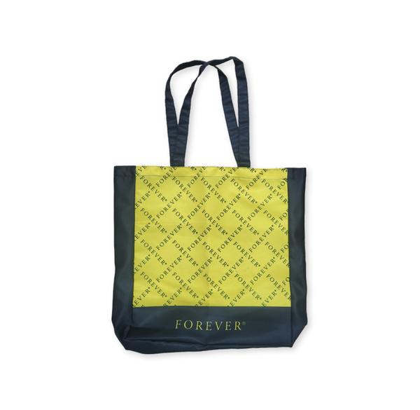 Πρακτική και κομψή υφασμάτινη τσάντα σε κίτρινο/μαύρο χρώμα με επαναλαμβανόμενο μοτίβο "FOREVER". Διαθέτει άνετες μακριές λαβές για εύκολη μεταφορά στον ώμο και ευρύχωρο εσωτερικό για καθημερινή χρήση. Ιδανική για ψώνια, βόλτες και κάθε δραστηριότητα.